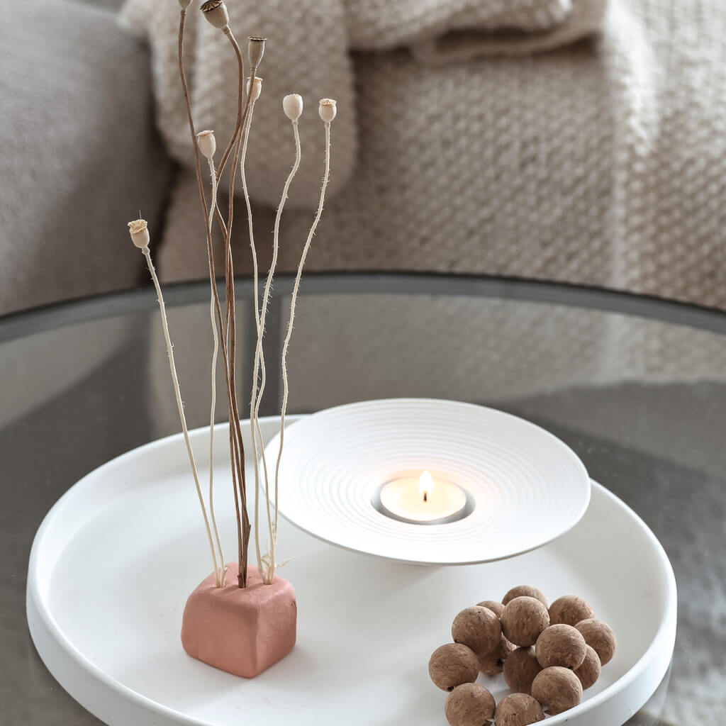Die genauen Schritte und wo du die passenden Produkte für dein Deko DIY Projekt bekommst, das zeigen wir dir hier. Passende Produkte sind Modelliermasse und Trockenblumen.