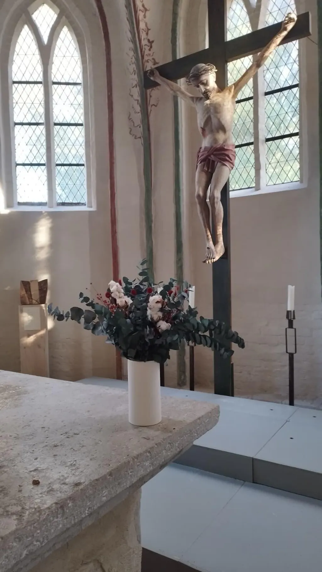 Ich hatte die Aufgabe, fΓΌr unsere kleine dΓΆrfliche Kirche einen Altarstrauss aus Trockenblumen zu bestellen. Vor der Bestellung sprach ich telefonisch alles Notwendige und GewΓΌnschte mit Mellie ab, denn keiner der angebotenen StrΓ€uΓe erfΓΌllte grΓΆssenmΓ€ssig die Anforderungen. Ich schickte Fotos vom Altarraum. Wenige Tage spΓ€ter wurde mir ein Foto des entworfenen StrauΓes geschickt. Ich bestellte samt passender Vase. Der StrauΓ ist wunderschΓΆn und gefiel zum letzten Gottesdienst allen Anwesenden. Wir wΓΌnschen dem jungen Unternehmen weiterhin viel Erfolg. Bei dem vorbildlichen Kundendienst wird Euch das gelingen. Herzlichst St.N.