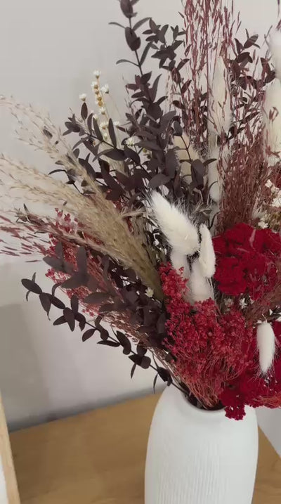 Our dried flower bouquet has been carefully put together and includes a fascinating mix of coordinated dried flowers. These unique flowers add texture, elegance and a touch of wildness to the bouquet that is perfect for autumn.