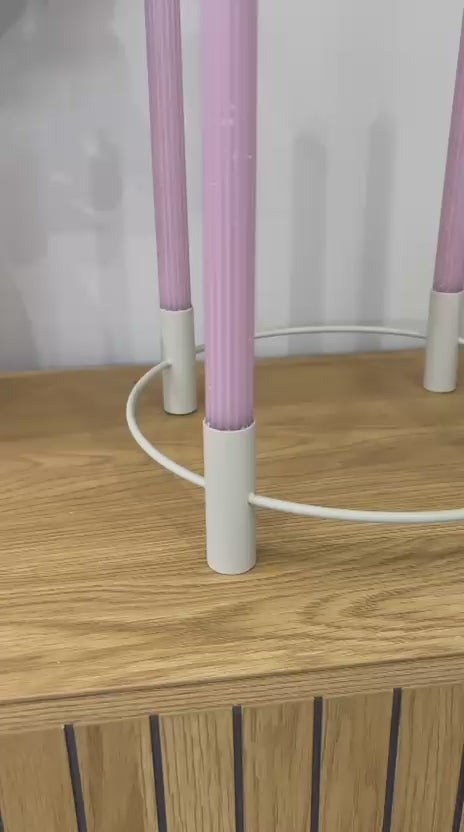 Schlicht, modern und vielseitig: Dieser weiße Metallring mit vier Kerzenhaltern ist die perfekte Basis für stilvolle Tischdekorationen – ob zur Adventszeit oder das ganze Jahr über.