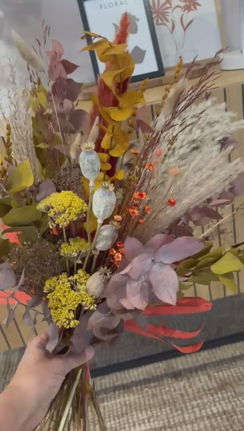 Touch of Earth: Trockenblumenstrauß mit Eukalyptus und Pampasgras in erdigen Farben